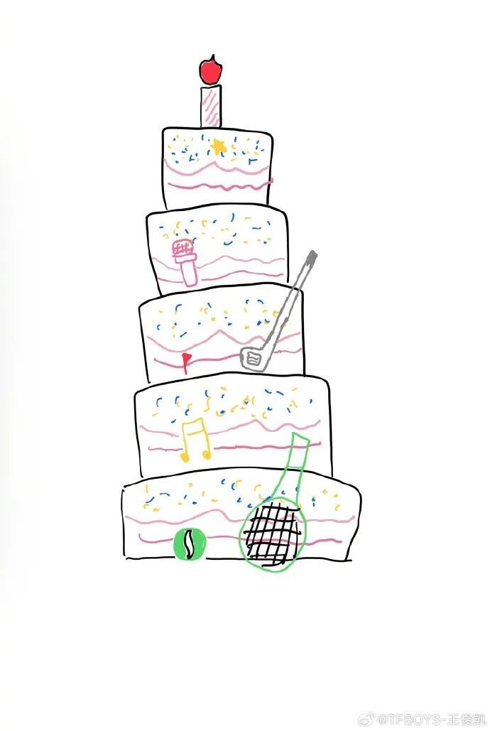 有细心的网友发现:王俊凯手搓的生日蛋糕上是全是对杰伦哥的爱,有麦克风、高尔夫、音乐和网球。
