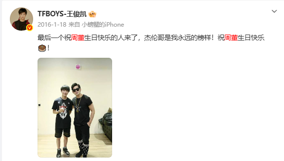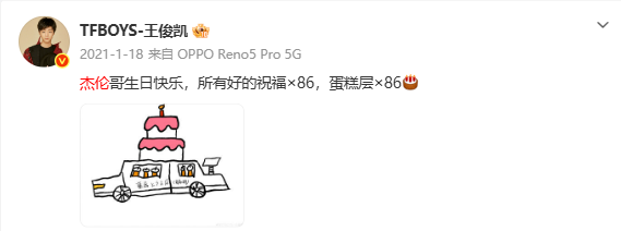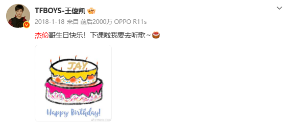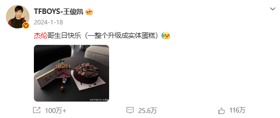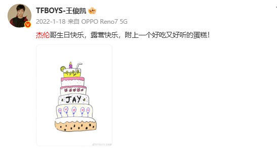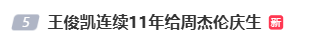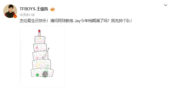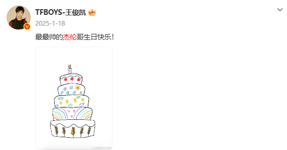 2026年1月18日凌晨,王俊凯再度卡点01:18,在社交平台为偶像周杰伦送上生日祝福。“王俊凯依旧手搓蛋糕”“王俊凯连续11年给周杰伦庆生”随即登上微博文娱榜热搜,被网友称为“追星界的天花板”。