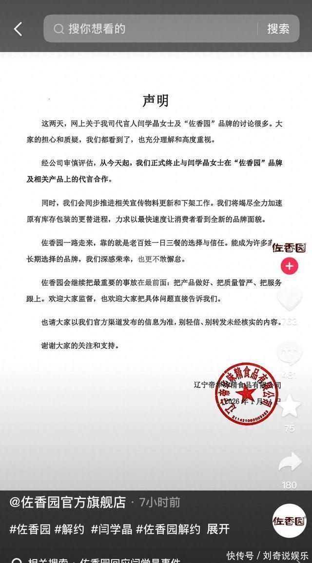 我特意去问做包装的朋友,他说光一个酱油瓶标签重印就要20万,还不算渠道退货。佐香园动作更快,11号发声明“即刻切割”,连淘宝旗舰店首页都换了新海报。品牌方不怕得罪人,怕的是消费者真不买。网友把“换代言人”刷成排比句,超市大姐直接下架货架,动作比公关部还利落。明星失言我见过,头一次见失言把工厂弄停产的。